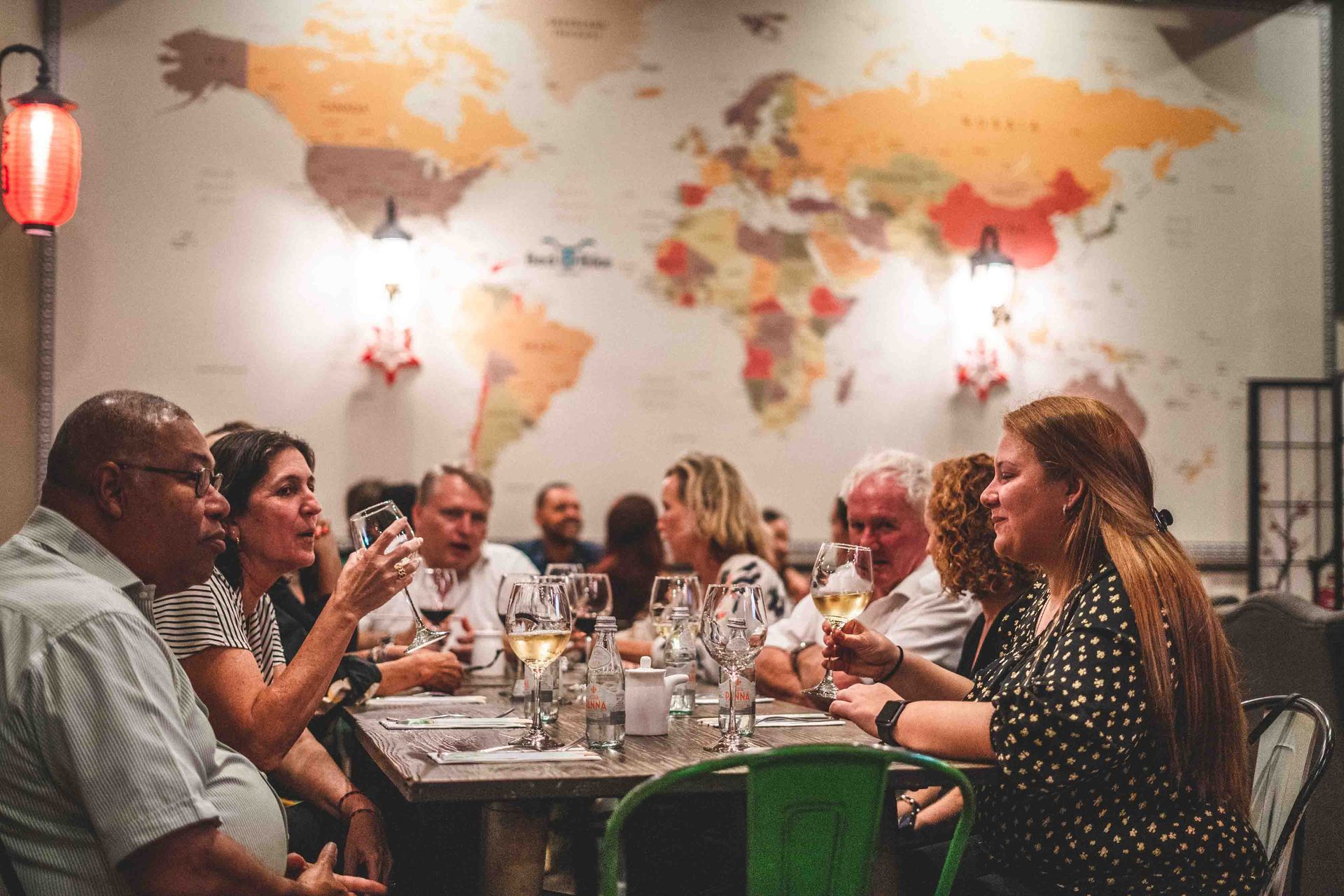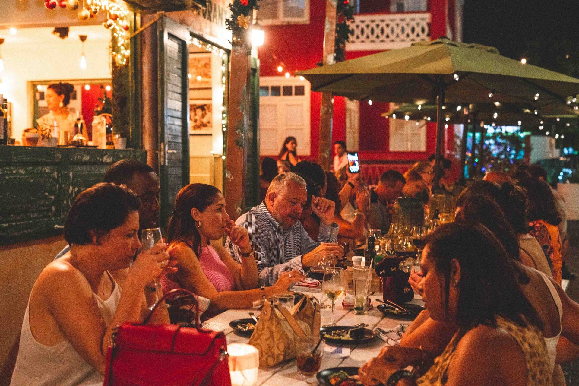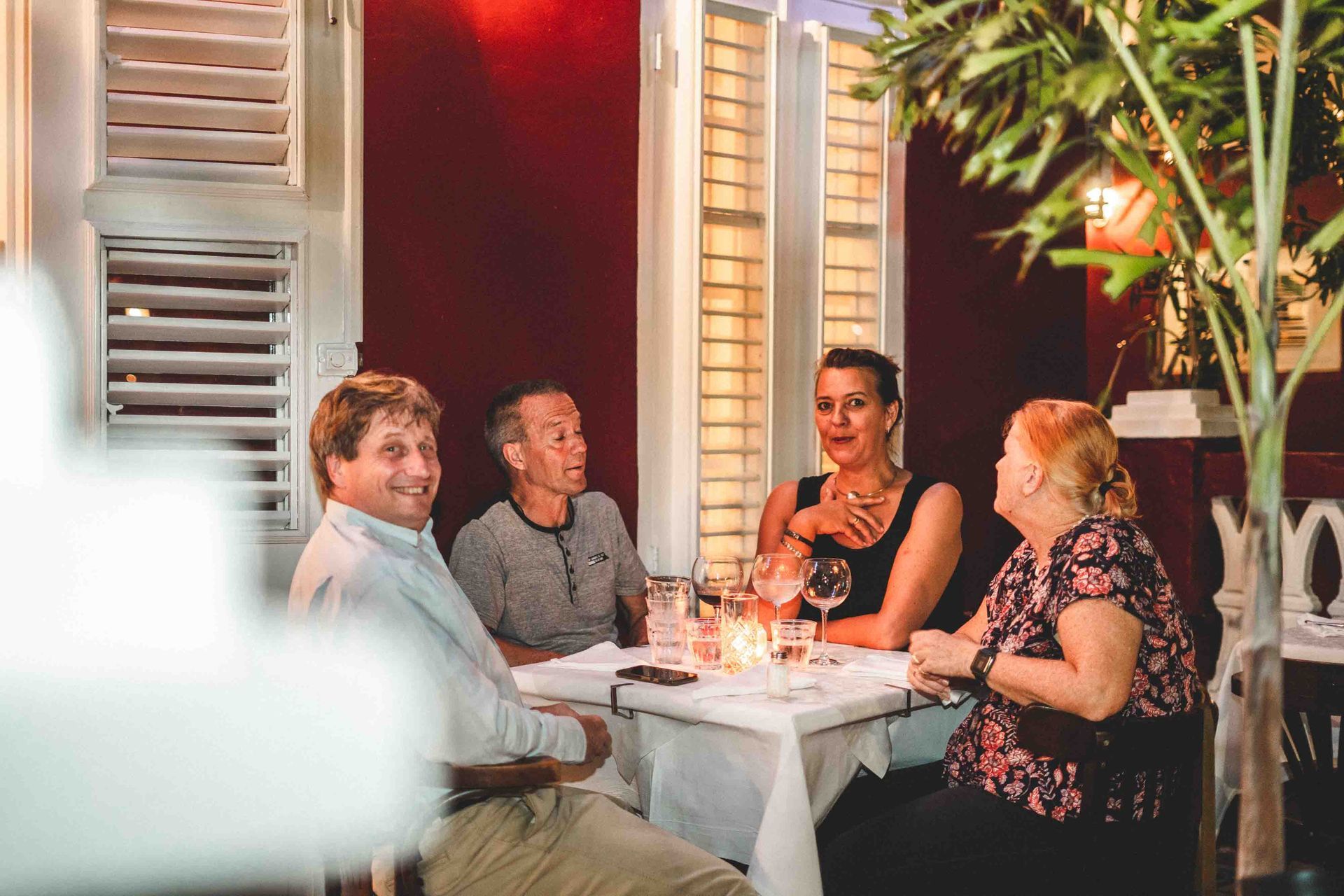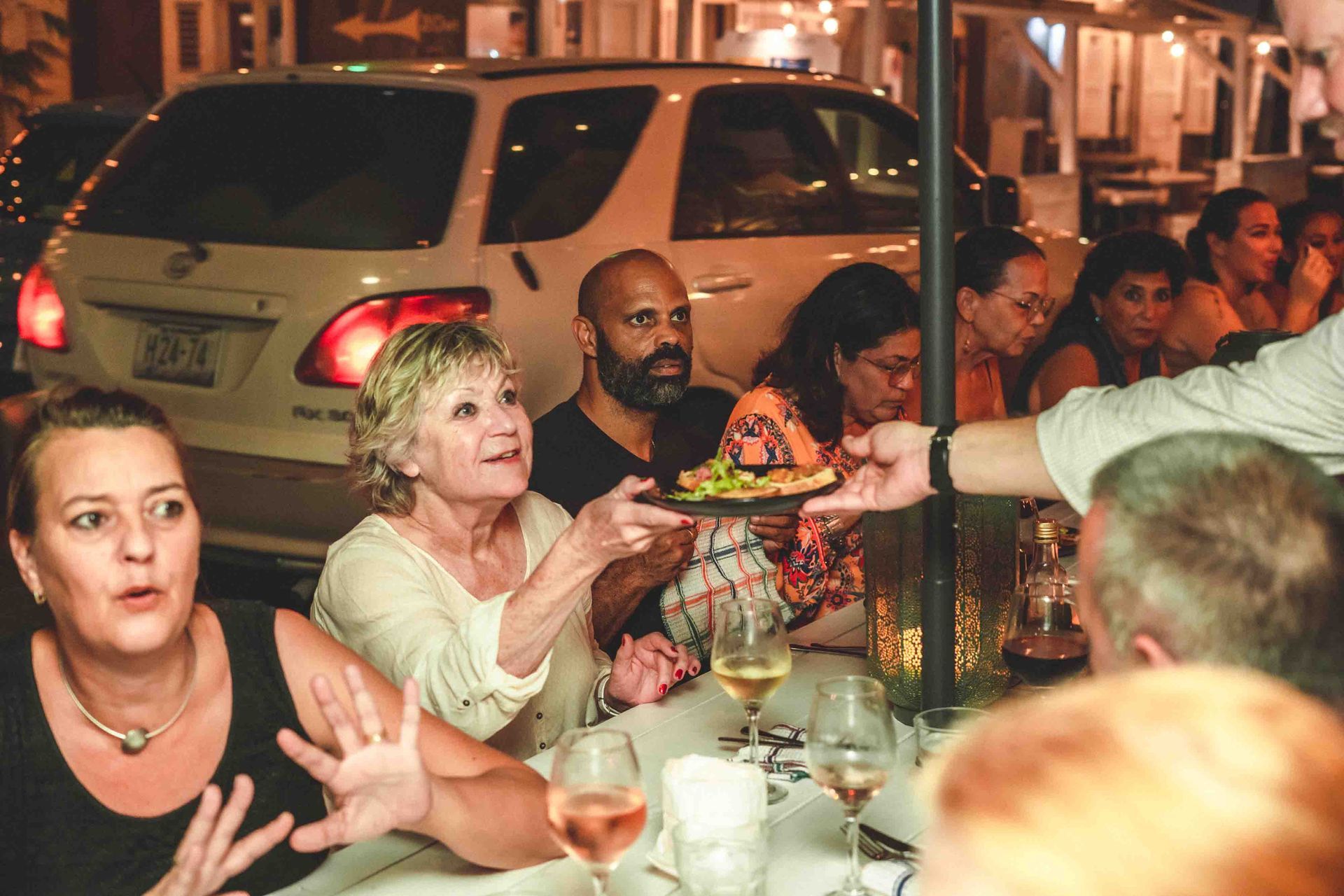 Het unieke aspect zit niet alleen in het menu en het wandelen van restaurant naar restaurant in het mooie Otrobanda, maar ook in het gezelschap; met wie deel je de tafel bij de volgende gang?
